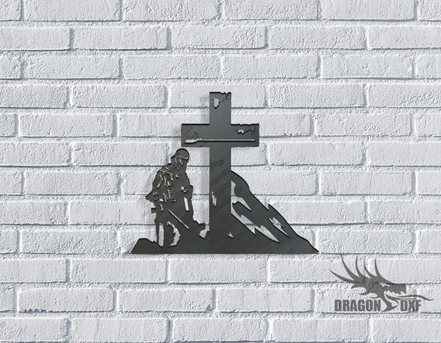 Soldier Kneeling Cross - Tattered Cross 10 - DXF Download